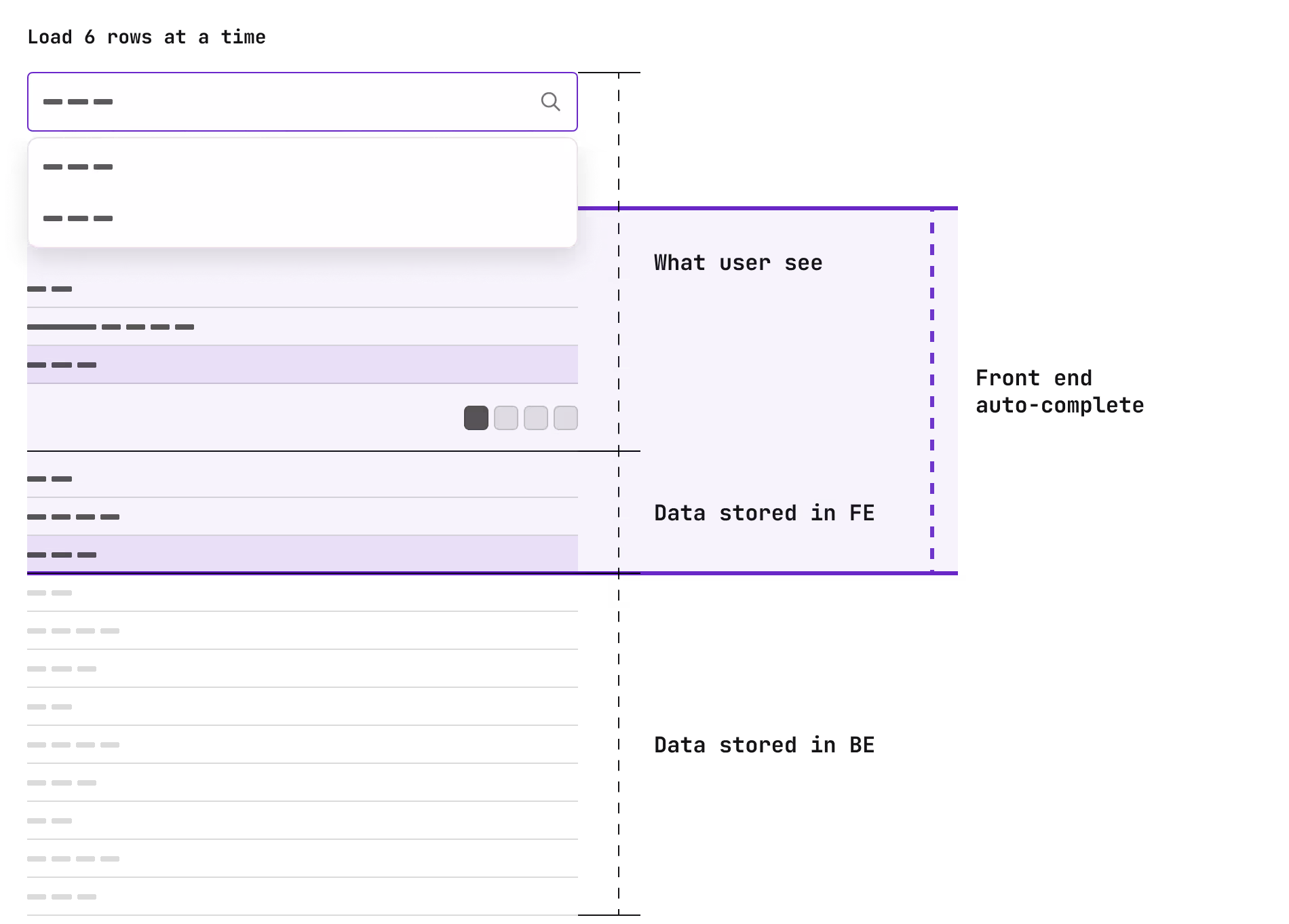 When a page loads, the back end returns a limited number of rows to the front end. Thus, we can at least provide auto-complete functionality based on the loaded front-end data.
