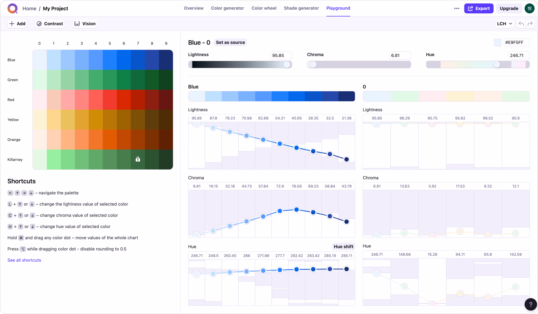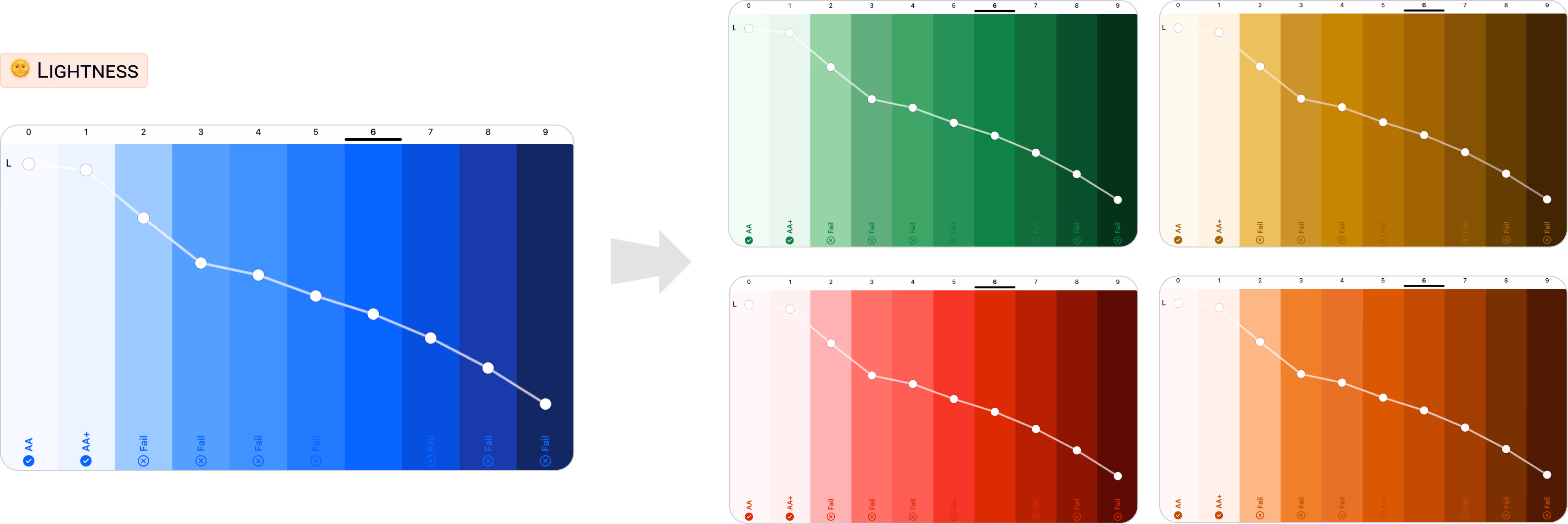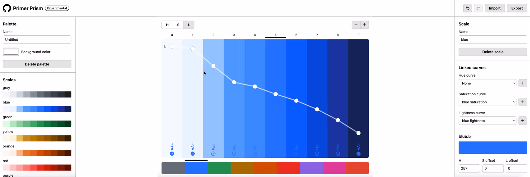 Primer Prism is an open source tool for creating and maintaining cohesive, consistent, and accessible color palettes. Primer Prism uses the HSLuv color space.